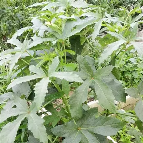 咖啡黄葵在正常条件下植株生长旺盛,主侧枝粗壮,叶片肥大,往往开花结果延迟。可采取扭枝法,即将叶柄扭成弯曲状下垂,以控制营养生长。生育中后期,对已采收嫩果以下的各节老叶及时摘除,既能改善通风透光条件,减少养分消耗,又可防止病虫蔓延。采收嫩果者适时摘心,可促进侧枝结果,提高早期产量。采收种果者及时摘心,可促使种果老熟,以利籽粒饱满,提高种子质量。