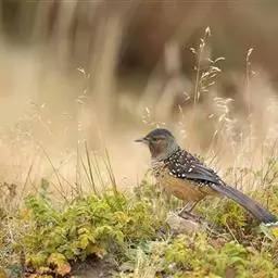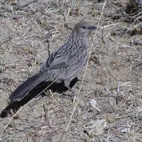大草鹛中型鸟类,体长31~34厘米。上体灰色具粗著的黑褐色条纹,腰和尾上覆羽纵纹不明显。颊和耳羽灰色,…