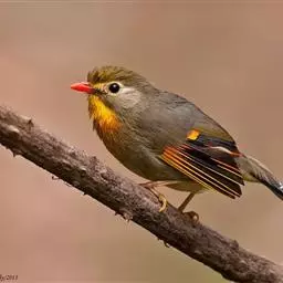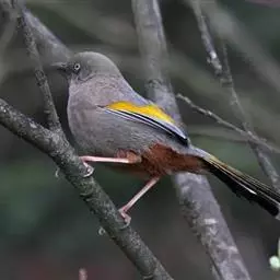 橙翅噪鹛:是噪鹛科、彩翼噪鹛属的中型鸟类,体长22-25厘米。头顶深葡萄灰色或沙褐色。上体灰橄榄褐色,…