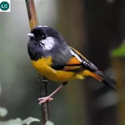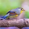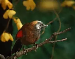 银耳相思鸟小型鸟类,体长14~18厘米。头顶黑色,耳羽银灰色,前额橙黄色;外侧飞羽橙黄色,基部朱红色,…