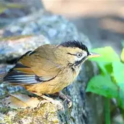 黑顶噪鹛:中型鸟类,体长24-26厘米。前额、脸、颏、喉黑色,头顶黑褐沾棕或深棕橄榄褐色,…