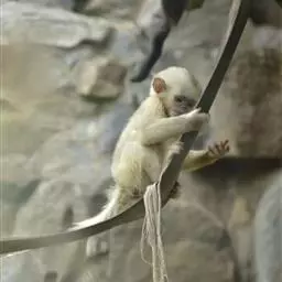 初生的幼仔全身的被毛为浅黄色,两眼大而有神,四肢的指(趾)尖都是红色,尤其美丽的是口唇呈樱桃红色,就像涂了口红的少女一般。 在云南,当地人也叫它雪猴或白猴,这可能是因为它生活在高山积雪地带,或者是由于它的幼仔全身为浅白色的缘故。另外,产地的藏族同胞叫它“知解”,白族同胞叫它“白疣”,都是有羊膻味的大白猴的意思。