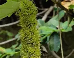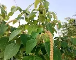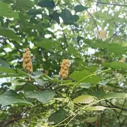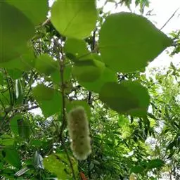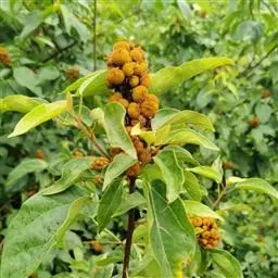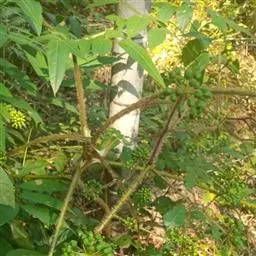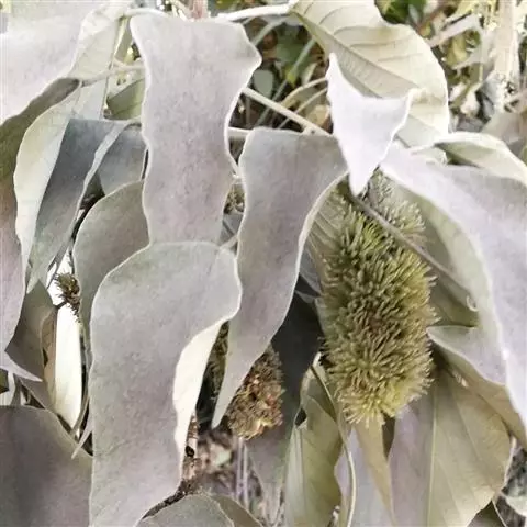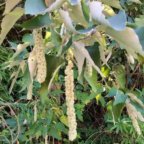 白楸叶 乔木或灌木,高3-15m;树皮灰褐色,近平滑;小枝、叶柄和花序均密被褐色或黄褐色星状绒毛。叶互生,生于花序下的常密集近轮生,卵形、卵状三角形或菱形,长5-15cm,宽3-10cm,顶端长渐尖,基部楔形或阔楔形,边近全缘或波状,上部有时具2裂片或粗齿;嫩叶两面均密被黄褐色或灰白色星状绒毛,成长叶上面无毛;基出脉5条,侧脉每边3-4条,第三级小脉横出,平行,基部近叶柄外有黑色腺体2个;叶柄稍盾状着生,长2-15cm。花雌雄异株,花序总状或下部具分枝,顶生;雄花序长10-20cm;苞叶卵状披针形,长约2mm,顶端渐尖;雄花在每苞片内2-6朵聚生;花蕾乱性或球形;花梗长约2mm;花萼裂片4-5,卵形,长2-2.5mm,外面密被星状 种子 毛;雄蕊50-60枚;雌花序长5-35cm雌花在每苞片内1-2朵;花梗长约1mm;花萼裂片4-5,长卵形,长2-3mm,不等大,外面密被星状绒毛;子房球形,被星状毛和皮刺,花柱3个,基部稍合生,柱头长2-3mm,背面羽毛状。蒴果扁球形,具钝三棱,直径10-15mm,密被褐色茸毛和皮刺,皮刺长4-6mm,被毛;种子近球形,深褐色,常有皱纹。花期:7-10月;果期:11-12月。