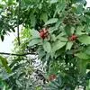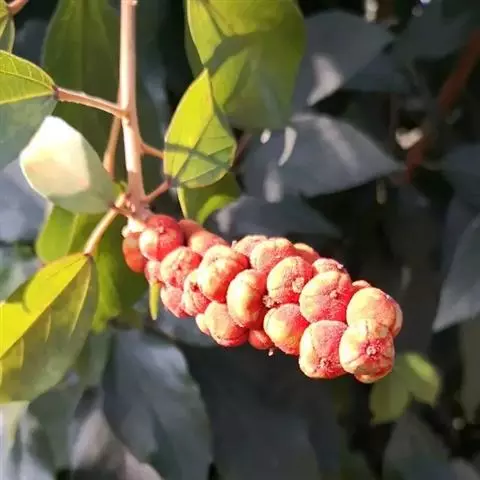 每年七月至十月间,细小而整齐的白花绽放,微带芳香。雌花和雄花长在不同花序,簇生於小枝条末端。果实在冬季成熟,被淡褐色毛,有柔软的长刺。