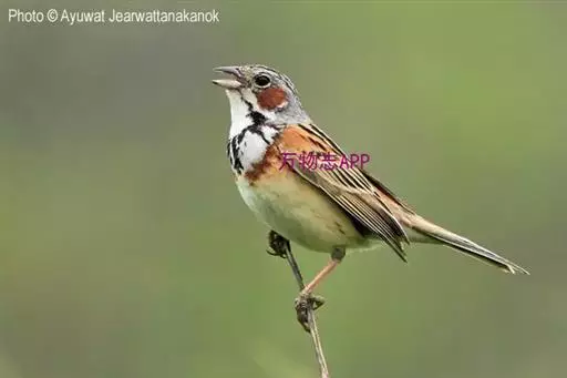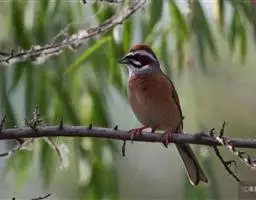 栗斑腹鹀:属小型鸣禽。体重19-25克,体长145-167毫米。头顶至背栗红色,眼先和颧纹黑褐色,…