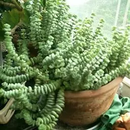 玉缀,别名翡翠景天景天科景天属常绿或半常绿多肉植物,植物匍匐下垂,翠绿色。叶小,多汁,纺锤形,…