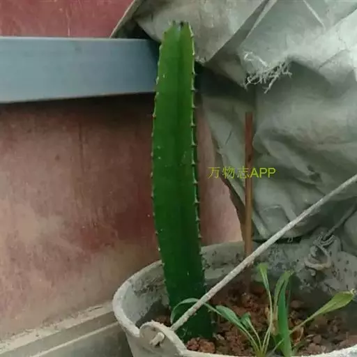 叶近簇生或稍二列(幼小植株),肥厚多汁,条状披针形,粉绿色,长15-35厘米,基部宽4-5厘米,顶端有几个小齿,边缘疏生刺状小齿。