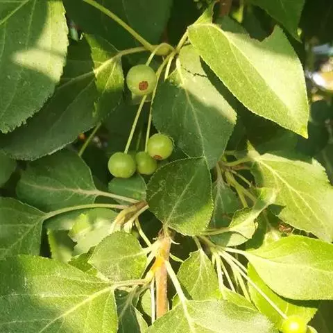 果实:湖北海棠属于高海拔地区自然野生种,果实为纯天然、无污染的绿色食品。其果为梨果,椭圆形或近球形,直径约1厘米,黄绿色稍带红晕,8-9月采果实,鲜用,其味酸、性平,可代山楂入药,消积化滞,治疗痢疾,疳积。所以其果实是一味很好的健胃消食药材,并可以酿酒。