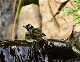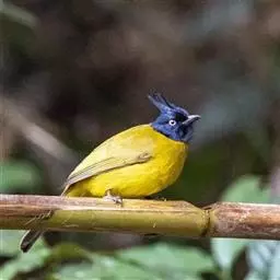黑冠黄鹎:体长18-21厘米,是一种中等体型偏黄色鹎。整个头、颈、颏、喉黑色,头顶有显著直立的羽冠,…