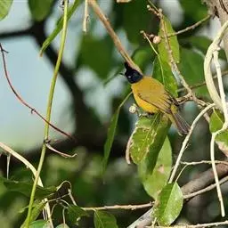 黑头鹎:体长17厘米。是一种中等体型的偏黄色鹎。特征为头辉黑、喉黑而眼蓝。上体黄橄榄色;两翼及尾偏黑,…