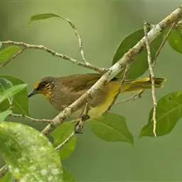 纹喉鹎:体长19厘米,是一种中等体型的偏绿色鹎。特征为头顶、脸颊、颏及喉均具黄色条纹。上体橄榄绿色。…