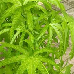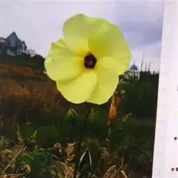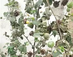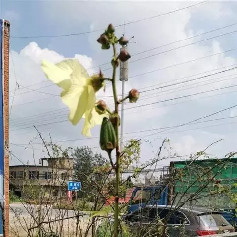 咖啡黄葵 Moench)亦称黄秋葵,是锦葵科一年生草本植物。茎圆柱形,疏生散刺。叶掌状,裂片阔至狭,…