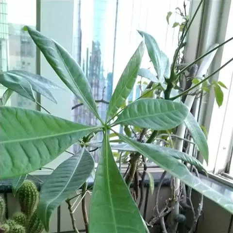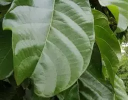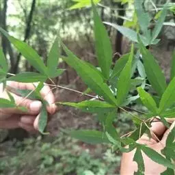 叶互生,掌状复叶,小叶3-7片,多为5片,倒卵状长椭圆形或椭圆形,中央小叶较大,长7-14厘米,上半部边缘有锯齿,先端突尖或渐尖,基部楔形。