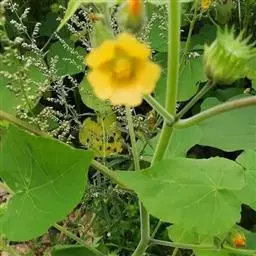 黄蜀葵 Medicus),是锦葵科秋葵属一年生或多年生草本。全株疏被长硬毛;叶近圆形,…