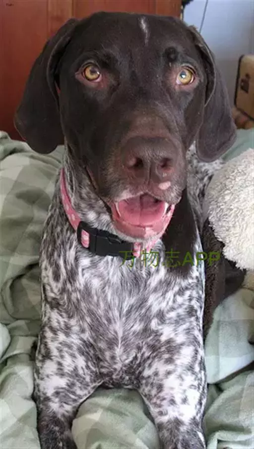 德国短毛指示犬的英文名为:German Shorthaired Pointer。它是一种友善、聪明、乐于助人的狗。给人的第一印象是热烈而渴望工作,没有任何神经不安或企图逃跑的迹象。