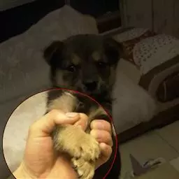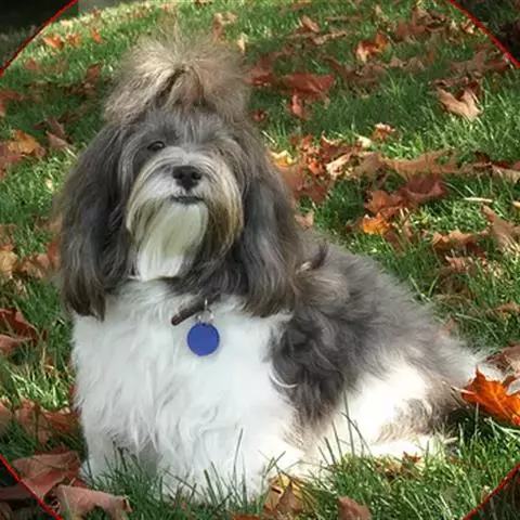 青灰色眼睛或眼睛内有色环。肉色鼻镜。上颚突出式咬和或下颚突出式咬和。任何区域带有黑色、红色、橘色、柠檬色、棕色、白色的狗。