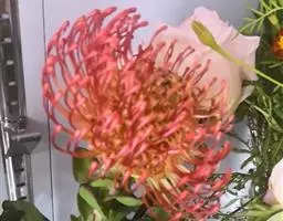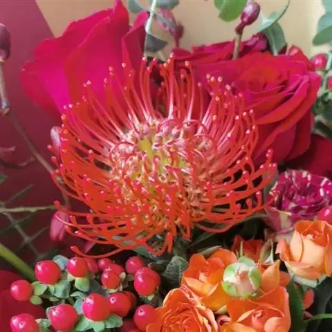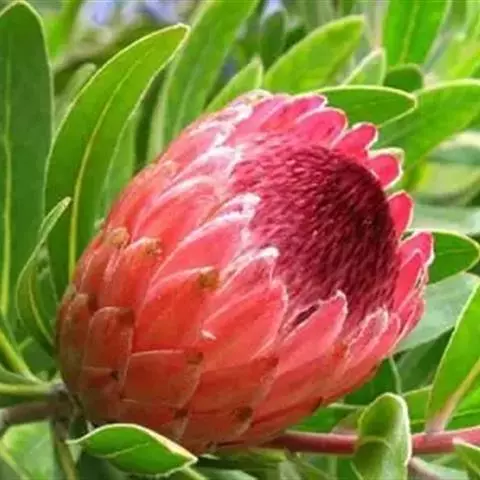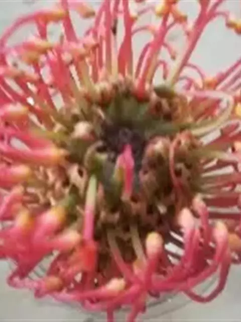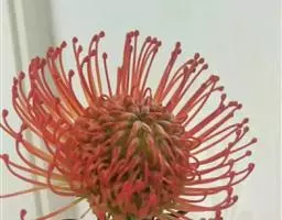 帝王花,山龙眼科帝王花属多年生常绿灌木植;茎干粗壮,叶色翠绿光亮;花朵呈圆球状;其苞片有的完全打开,…