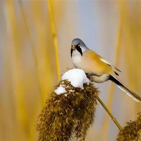 文须雀,别称髭雀、文须山雀,属雀形目、鹆鸟科、画眉亚科。眼先及髭纹黑色,头顶暗灰,…
