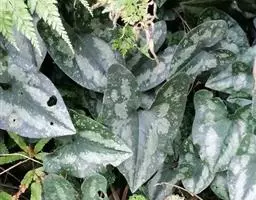 2、花叶尾花细辛,与尾花细辛相似,但叶面有白色点状或块状花斑。花期3月。
