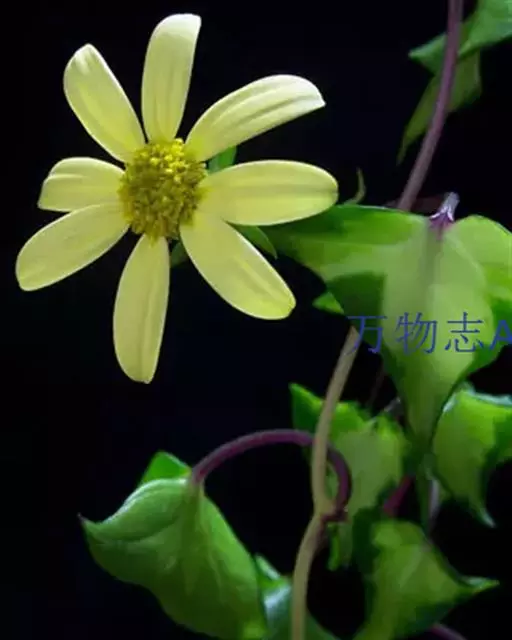 为菊科,千里光属多年生肉质植物,植株匍匐或悬垂、向上攀援生长,茎圆柱形,红褐色;叶互生,具叶柄,肉质,很脆,易折断,叶色深绿,有浅色的脉纹;小花乳白色,有黄心。 绿玉菊开花