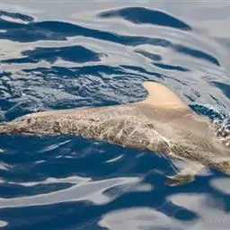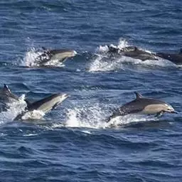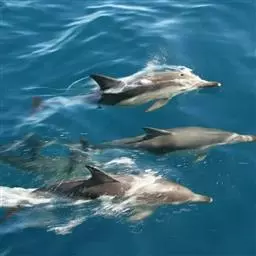 真海豚,身体细而流线型。体色十分复杂而独特,通常十字交叉型,黄褐色在前灰色在后,背面黑色向下延伸,…