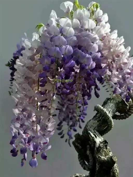 紫藤为长寿树种,民间极喜种植,成年的植株茎蔓蜿延屈曲,开花繁多,串串花序悬挂于绿叶藤蔓之间,瘦长的荚果迎风摇曳,自古以来中国文人皆爱以其为题材咏诗作画。在庭院中用其攀绕棚架,制成花廊,或用其攀绕枯木,有枯木逢生之意。还可做成姿态优美的悬崖式盆景,置于高几架、书柜顶上,繁花满树,老桩横斜,别有韵致。