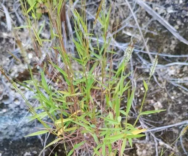 金丝草 ,别名落苏、黄毛草、毛毛草、笔仔草、猫仔草、墙头竹,拉丁文名Pogonatherum crinitum (Thunb.) Kunth.,金丝草属,禾本科,单子叶植物纲,被子植物门。