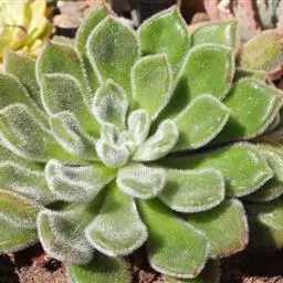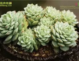 吉娃莲,景天科拟石莲花属,别名:吉娃娃,吉娃莲,植株小型,无茎的莲座叶盘非常紧凑。卵形叶较厚,带小尖,…