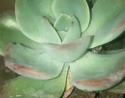 肉质叶呈标准的莲座状排列,叶短匙形,稍直立,先端圆而有小尖,微向内弯曲,使全株略呈漏斗形,叶色浅绿或蓝绿,质稍薄,被有白粉或蜡质层。
