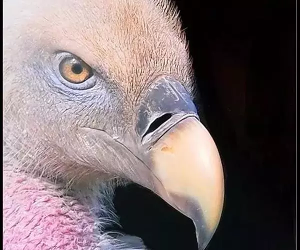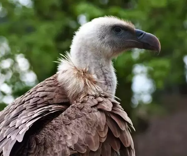 高山兀鹫头和颈上部被有污黄色像头发一样的羽毛,到下颈羽毛逐渐变白和变成绒羽,颈基部有长而呈披针形的簇羽形成领翎围绕在颈部,淡皮黄色或黄褐色,具有中央白色羽轴纹。背和翅上覆羽淡黄褐色,羽毛中央较褐,形成一些不规则的褐斑,外侧大覆羽、飞羽和尾羽暗褐色,内侧次级飞羽具淡色尖端。上胸为密的白色绒羽和被有淡褐色胸斑,其余下体淡皮黄褐色,肛区和尾下覆羽全白色,具不清晰的羽轴纹。幼鸟头部褐色,绒羽较成鸟多。上体暗褐色,背、肩和翅上覆羽具粗著的黄白色纵纹,初级飞羽和尾羽黑褐色。下体暗褐色,具淡色羽轴纹。
