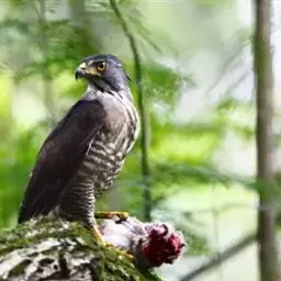 苍鹰是中小型猛禽。体长可达60厘米,翼展约1.3米。头顶、枕和头侧黑褐色,枕部有白羽尖,…