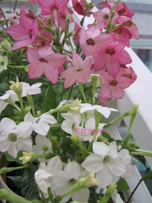 花烟草又叫烟草花,由于植株紧凑,连续开花,是优美的花坛、花境材料,广泛用作盆景、庭院、草坪绿化植物。