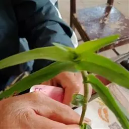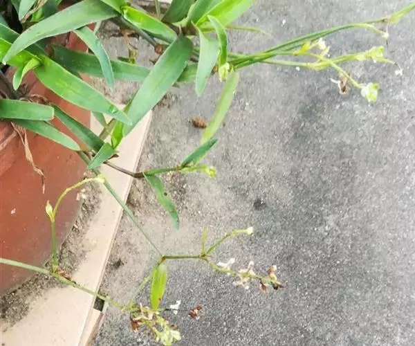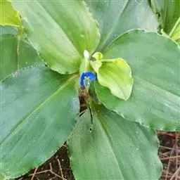 裸花水竹叶为多年生草本。须根发达。茎丛生,横卧,肉质,节处生不定根,节部明显,节间微带紫色,分枝多。叶互生,略肉质;线状披针形,长3~10厘米,宽1厘米左右,上面深绿色,下面两侧有时具紫色斑点,全缘,边缘紫红色;具叶鞘,抱茎节,鲜紫红色,边缘有刚毛。为总状形聚伞花序,生于枝顶或顶端叶腋,花直径1.2厘米;花萼3,长卵形,先端略尖,绿色;花瓣3,倒卵圆形,较萼片长1/3,蓝紫色;雄蕊6,其中2枚发育,花药黑色,1枚仅有花丝,3枚退化,其花丝略短,顶部成扁平的小蝶形花药,黄色,所有花丝均有蓝紫色长毛;子房3室,每室2个胚珠。果实每室有种子2粒。花期8~9月。生于潮湿的沟边及荒地。