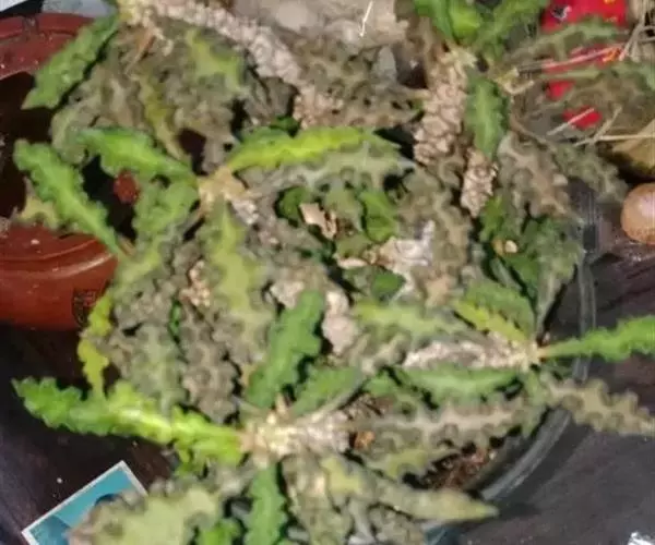 皱叶麒麟因叶子充满起伏的皱褶而得名,是一种充满野趣的小型多肉植物,其株形小巧玲珑,根茎虬曲多姿,皱巴巴的叶子簇生于枝头。除单独盆栽观赏,还是制作盆景小品。