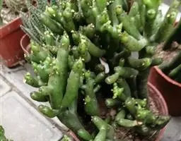 魁伟玉原产南非,是一种大戟科的多年生肉质植物,植株具粗圆筒形肉质茎,有10条以上的突出棱,…