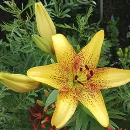 随着时代的进步,欧美园艺专家通过杂交育种途径去创造新的品种。半个世纪后,终于选育出一批统称为“金百合”的新花。其特色是打破了中国百合全是一茎一朵、单纯白色的现状,变成一茎多朵,花色既有金黄、橙红和淡紫,又有彩斑、条纹等其它图案颜色,从而更加丰富了观赏的内涵。例如美国的“火黄”,其朵头较大;金光闪闪,秀丽非凡,每枝能开花五六朵。又如由荷兰人改良的“卷丹”,花色橙红,花被反卷,内有紫色斑点,伸出丝丝雄蕊,每枝能开花七八朵。另外还有些品种不但秀丽诱人,而且还蕴含香味,最适宜做厅堂的插花,使人们欣赏起来。不禁引发出“夜深香满屋,疑是酒醒时”的感觉。