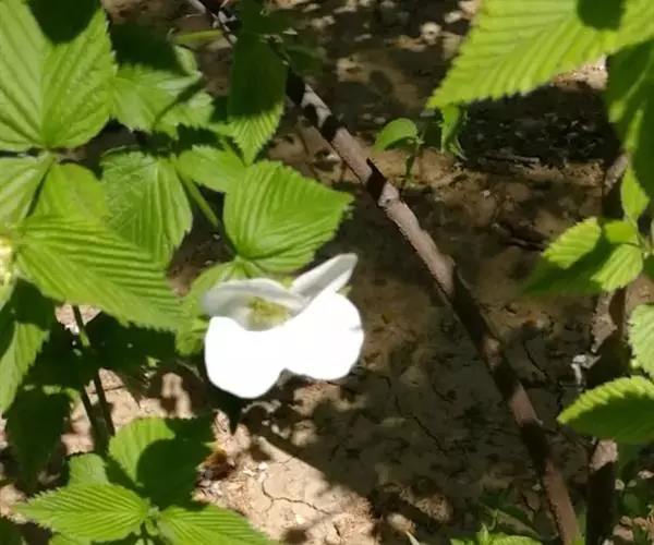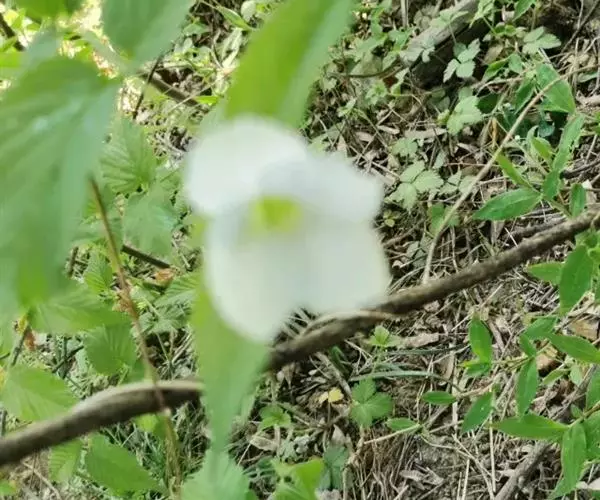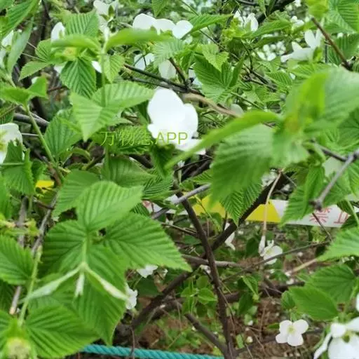 单花顶生于新梢上;花直径3-5厘米;萼片大,卵状椭圆形,顶端急尖,边缘有锐锯齿,外面被稀疏绢状柔毛,副萼片细小,狭带形,比萼片短4-5倍;花瓣白色,倒卵形,比萼片长1/4-1/3倍。