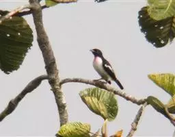 斑椋鸟:是中等体型的黑白色椋鸟,体长24厘米。头顶、头侧、翼斑、腰及腹部白色,喉、胸及上体余部黑色,…