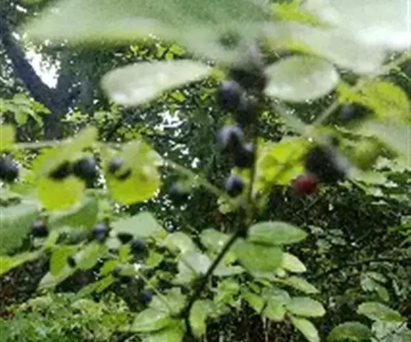 落叶灌木,高2-4cm。枝无毛,小枝细弱。叶互生,具短柄;叶片椭圆形至长圆形,长2-3cm,宽1.4-2cm,先端具小尖头,基部宽楔形或圆形,全缘。花簇生于叶腋;单性,雌雄同株;无花瓣;雄花数朵至10余朵簇生,萼片5-6;雌花通常1朵,生于雄花丛中,子房3室,柱头3。浆果球形,直径6-8mm,紫黑色,具宿存花柱;果柄长4-5mm。花期4-7月,果期7-10月。