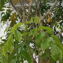 小叶3-5片,一般为椭圆或卵形,长9-15cm,花黄色或带黄色条纹,花期为11-12月,果呈园形,果期4-5月。