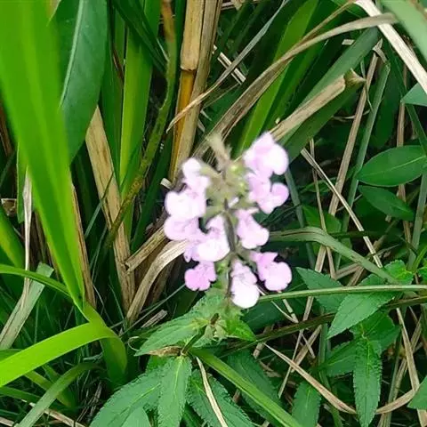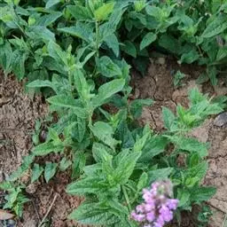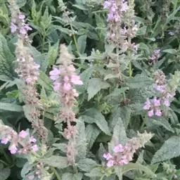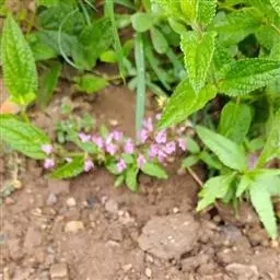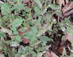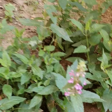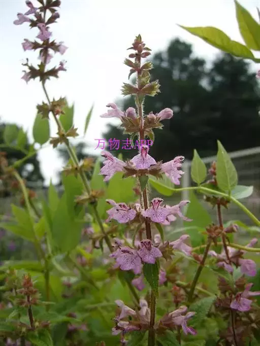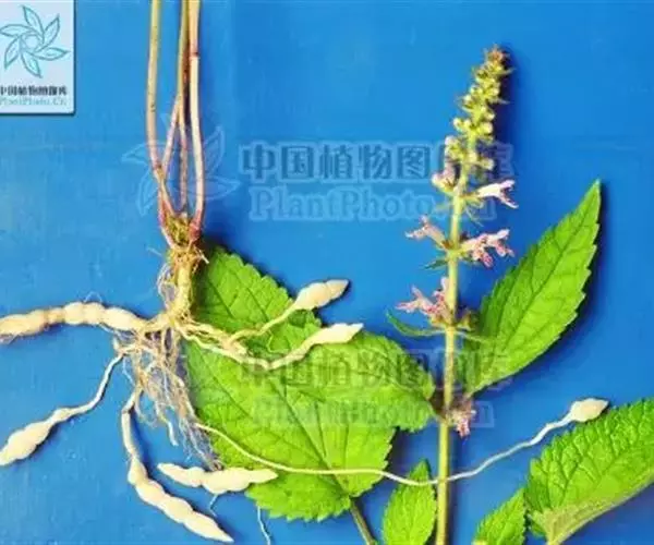 多年生草本,根状茎匍匐,其上密集须根及在顶端有串珠状肥大块茎的横走小根状茎。茎高30-60cm,四棱形,在棱及节上有硬毛。叶对生,卵形或椭圆长卵形式形,长3-10cm,宽1.5-6cm,两面被贴生短硬毛。轮伞花序常6朵花,多数远离,排列成5-15cm顶生假穗状花序。小苞片条形,花萼狭钟形。花冠二唇形,粉红色至紫红色。小坚果卵球形。