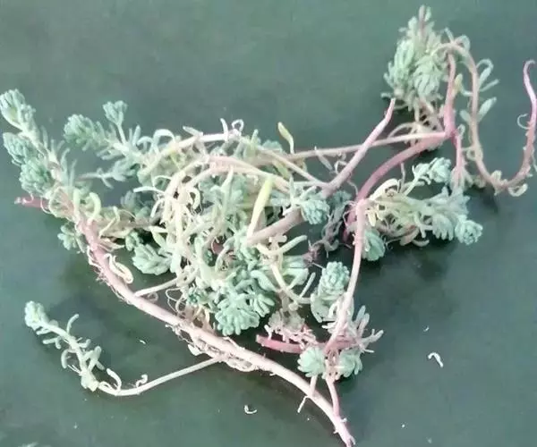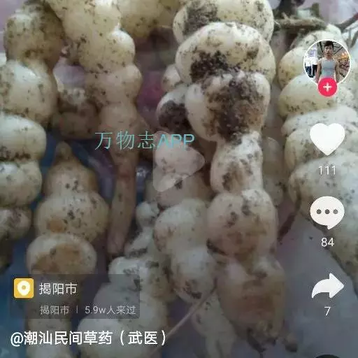 药材性状 根茎多成纺锤形,顶端有的呈螺旋状,两头略尖,长1.5-4cm,直径3-7mm。表面棕黄色,多皱缩,扭曲,具5-15个环节,节间课件点状芽痕及根痕。质坚脆,易折断,断面平坦,白色。气微,味微甘。用水浸泡后易膨胀,节结明显。