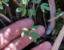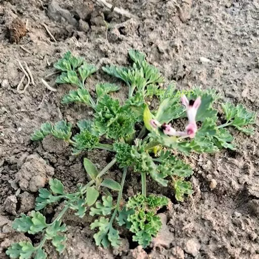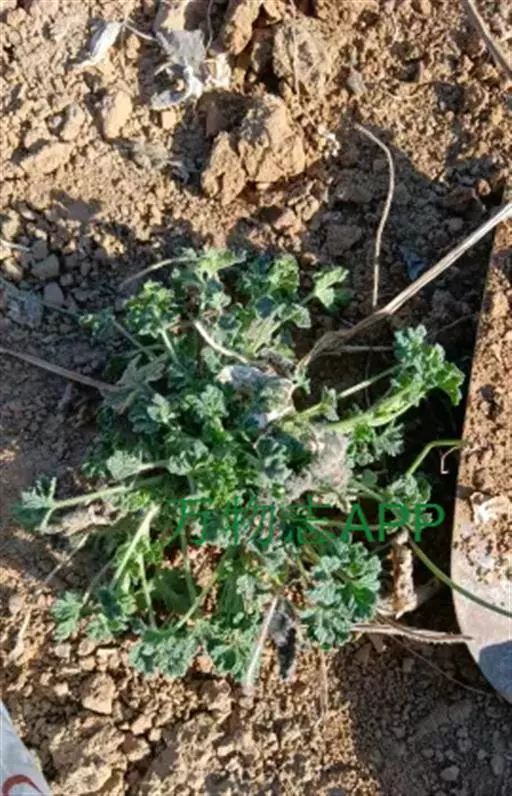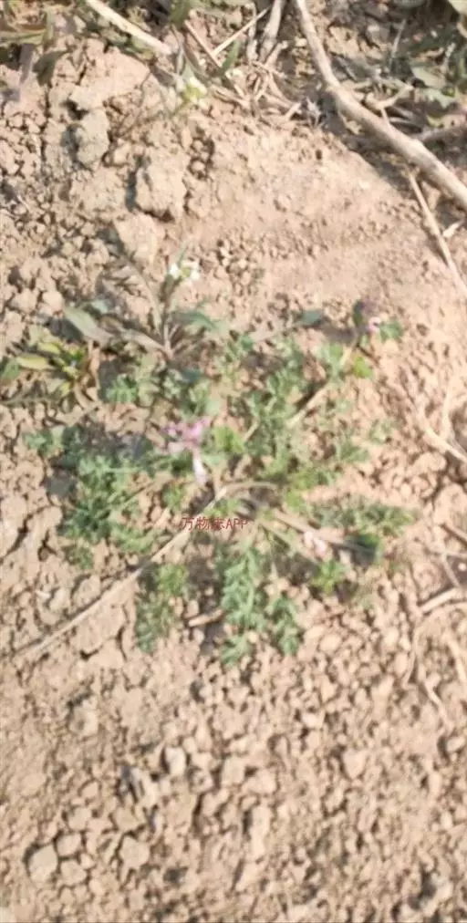 地丁草为二年生灰绿色草本,高10-50厘米,具主根。茎自基部铺散分枝,灰绿色,具棱。基生叶多数,长4-8厘米,叶柄约与叶片等长,基部多少具鞘,边缘膜质;叶片上面绿色,下面苍白色,二至三回羽状全裂,一回羽片3-5对,具短柄,二回羽片2-3对,顶端分裂成短小的裂片,裂片顶端圆钝。