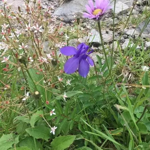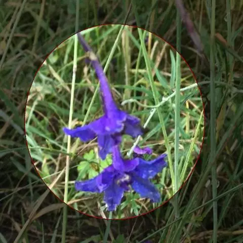 该种与高翠雀花的主要区别是轴及花梗有弯曲和近直展的柔毛,以及黄色短腺毛;苞片线形;花梗向上斜展,长1-1.5厘米;小苞片与花邻接,披针形或披针状线形,长5-10毫米,宽0.7-1毫米,有白色疏柔毛和黄色短腺毛。产新疆阿尔泰山。生海拔1890-2100米间山地一草坡。