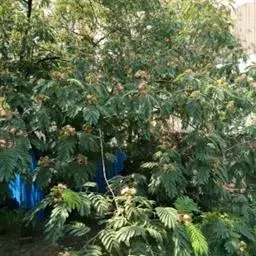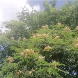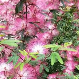 山槐叶形雅致,盛夏绒花红树,色泽艳丽,可作为庭荫树,或丛植成风景林。