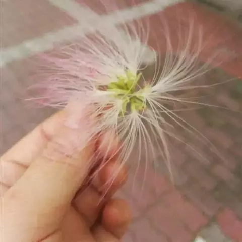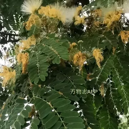 花:山槐的花头状花序2-7枚生于叶腋,或于枝顶排成圆锥花序。花初白色,后变黄,具明显的小花梗;花瞥管状,长2-3毫米,5齿裂。花冠长6-8毫米,中部以下连合呈管状,裂片披针形,花粤、花冠均密被长柔毛;雄蕊长2.5 -3.5厘米,基部连合呈管状。花期6-7月。