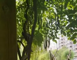 果:荚果带状,长7-17厘米,宽1.5 -3厘米,深棕色,嫩荚密被短柔毛,老时无毛。种子4-12颗,倒卵形。果期8-10月。