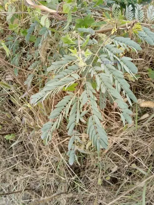 山槐,属中等乔木,通常高3-8米。枝条暗褐色,被短柔毛,有显著皮孔。二回羽状复叶,有羽片2-4对,小叶先端圆钝而有细尖头,两面均被短柔毛,中脉稍偏于上侧。花白色,花冠密生短柔毛。荚果扁平,深褐色,疏生短柔毛。花期6-7月,果熟期8-9月。 [1-2]