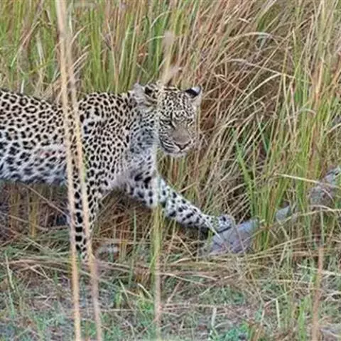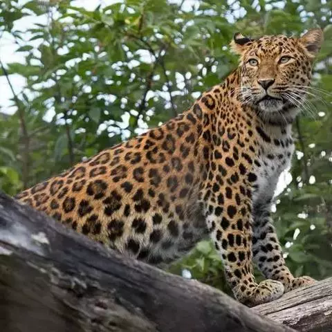 花豹是大型肉食性动物,体形似虎,但明显较小;头小尾长,四肢短健;毛被黄色,满布黑色环斑;头部的斑点…