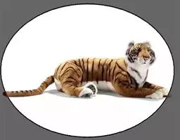 虎的体态雄伟,毛色绮丽,头圆,吻宽,眼大,嘴边长着白色间有黑色的硬须,长达15厘米左右。颈部粗而短,几乎与肩部同宽,肩部、胸部、腹部和臀部均较窄,呈侧扁状,四肢强健,犬齿和爪极为锋利,嘴上长有长而硬的虎须,全身底色橙黄,腹面及四肢内侧为白色,背面有双行的黑色纵纹,尾上约有10个黑环,眼上方有一个白色区。